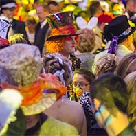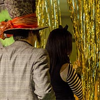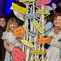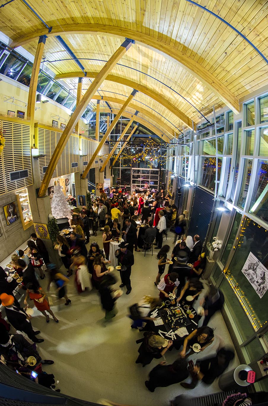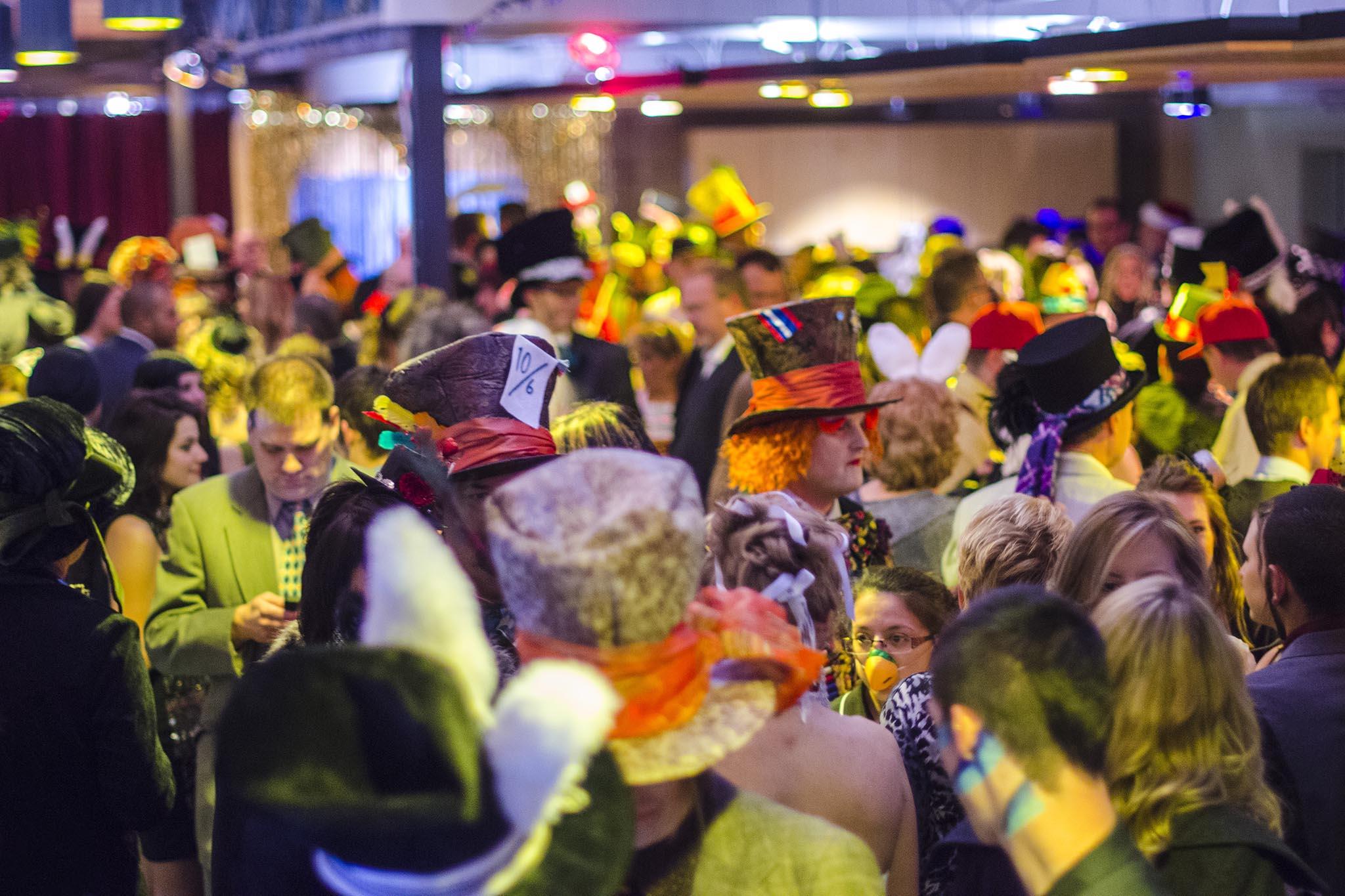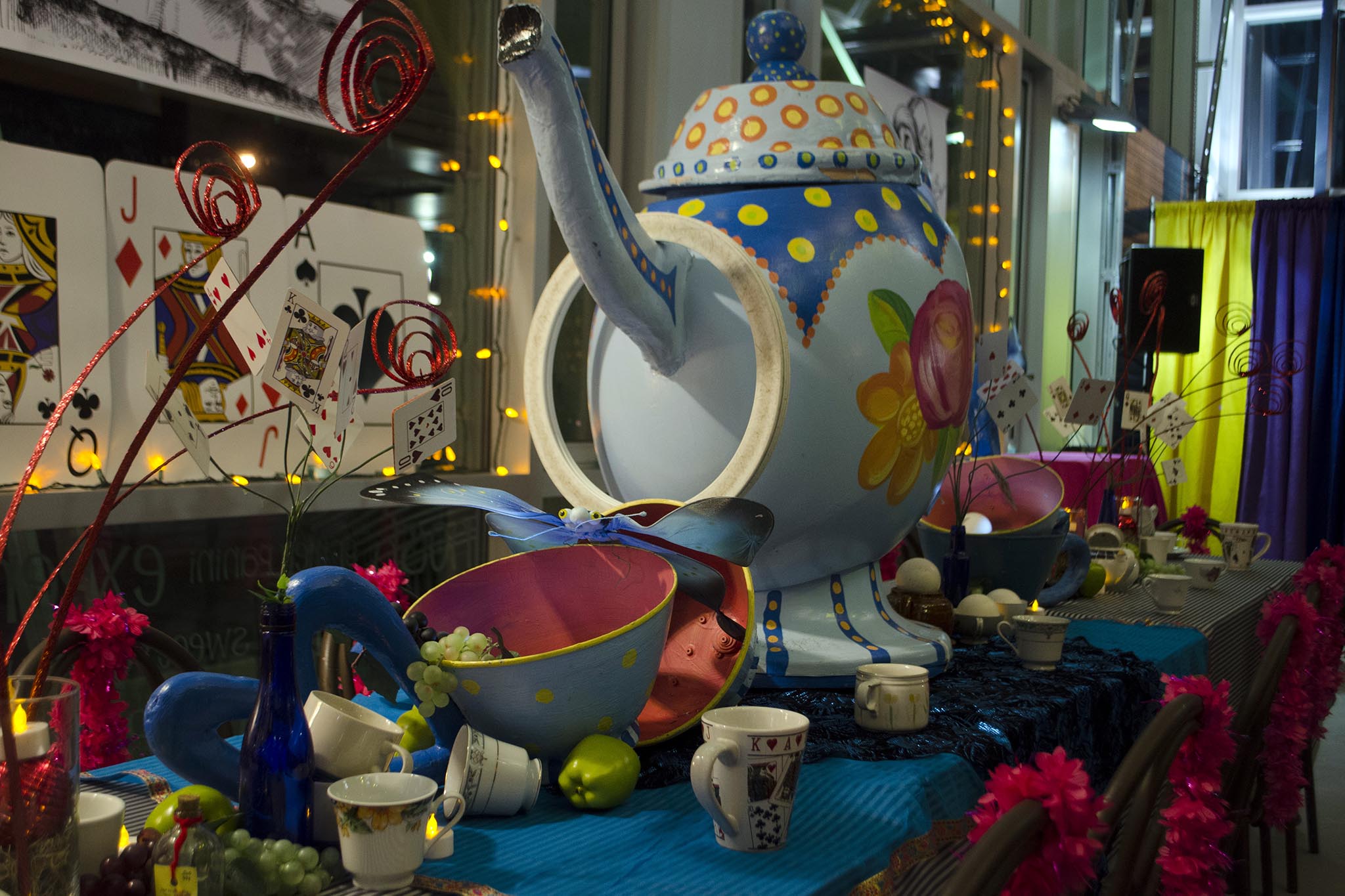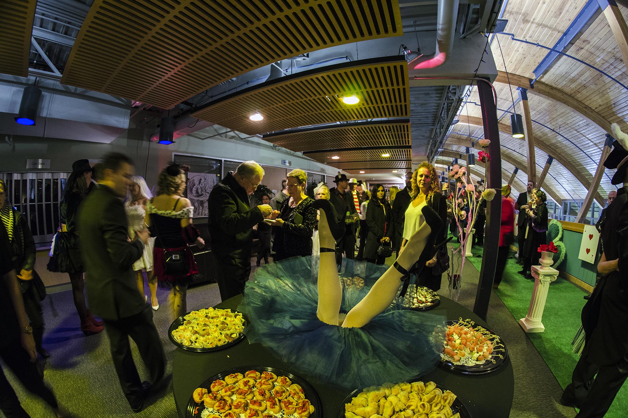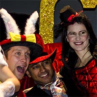 Guests at this Christmas party arrived in costume and were transported into the magical and enchanting world of Wonderland. As guests made their way through the rabbit hole into a beautifully themed Rotary Centre for the Arts, they encountered peculiar characters and creatures, playing card acrobats and enjoyed a 'Tea Party' cocktail reception, hosted by the Mad Hatter himself. Food stations around the centre provided many different dining options.